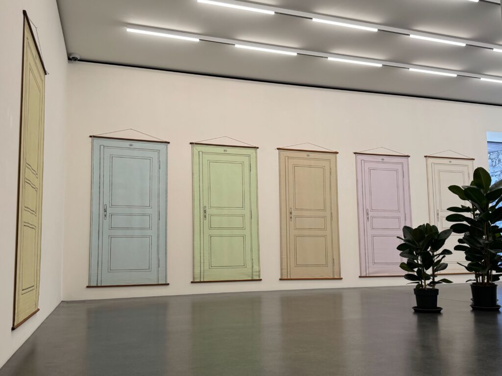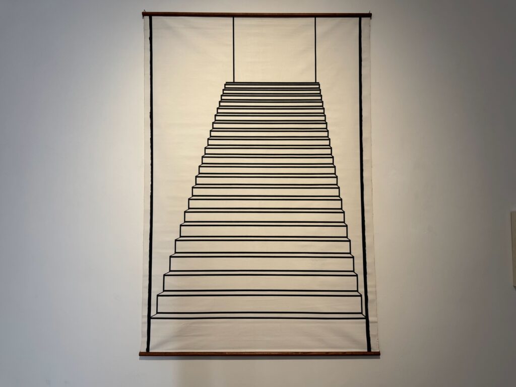 Das übergroße Gemälde ist die Treppe zu ihrem Studio im Institut, genauso wie „doorway“ , gemalt auf Leinwand und an Fäden aufgehängt, stammt aus dem Umfeld ihrer Arbeit.