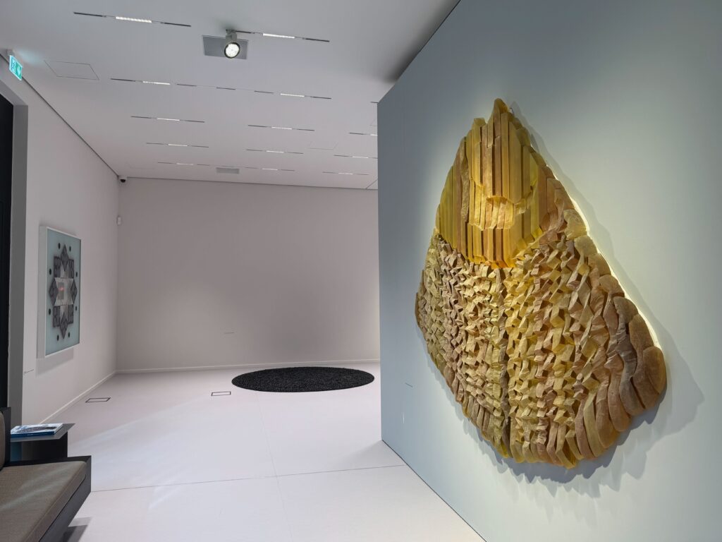 Es ist ein Spaziergang wie in einem Zaubergarten. Fast immer ist man versucht, die Arbeiten mit den Händen zu berühren, dann man kann kaum glauben, was die Augen sehen. Aufgestellt, hingehängt, in eine Ecke platziert oder auf den Boden frappiert, unterstützt von einer raffinierten Raumarchitektur. Eine faszinierende Wirkung von Licht, Farbe und technischer Machbarkeit verbreiten eine große Emotion.