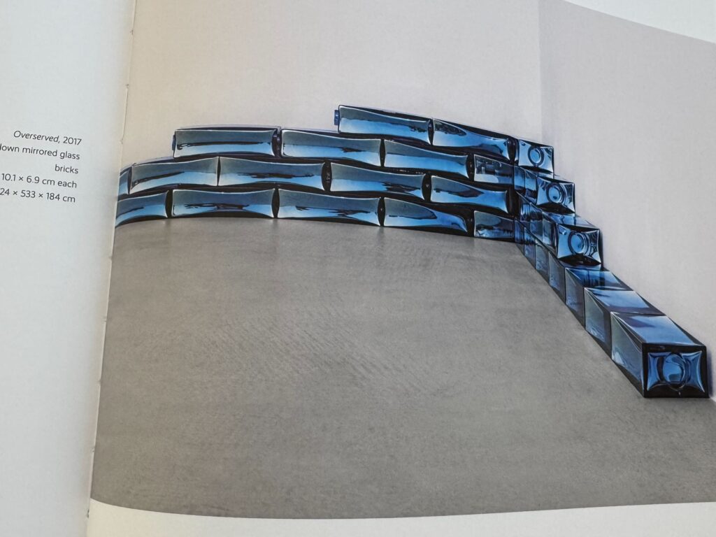 Wirklich verblüfft reagiert auf die blau-gläsernen Ziegelsteine von Pae White. In einer Ecke platziert, lockt das tiefe Blau die Blicke an und verweilt an einem Alltagsobjekt.