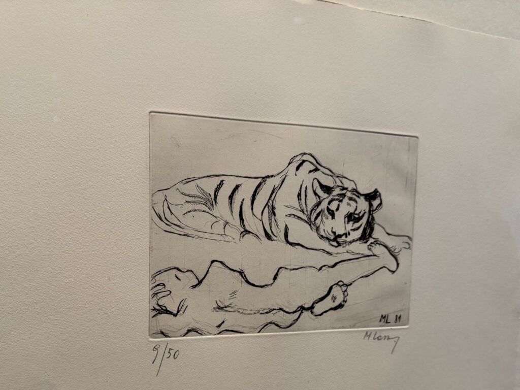 Für beide spielt der Tiger eine dominante Rolle. Für Maria Lassnig ist “ jeder Mann ein Tiger“,  ein animalischer Akt aber auch die Wahrnehmung vor Andersartigkeit.