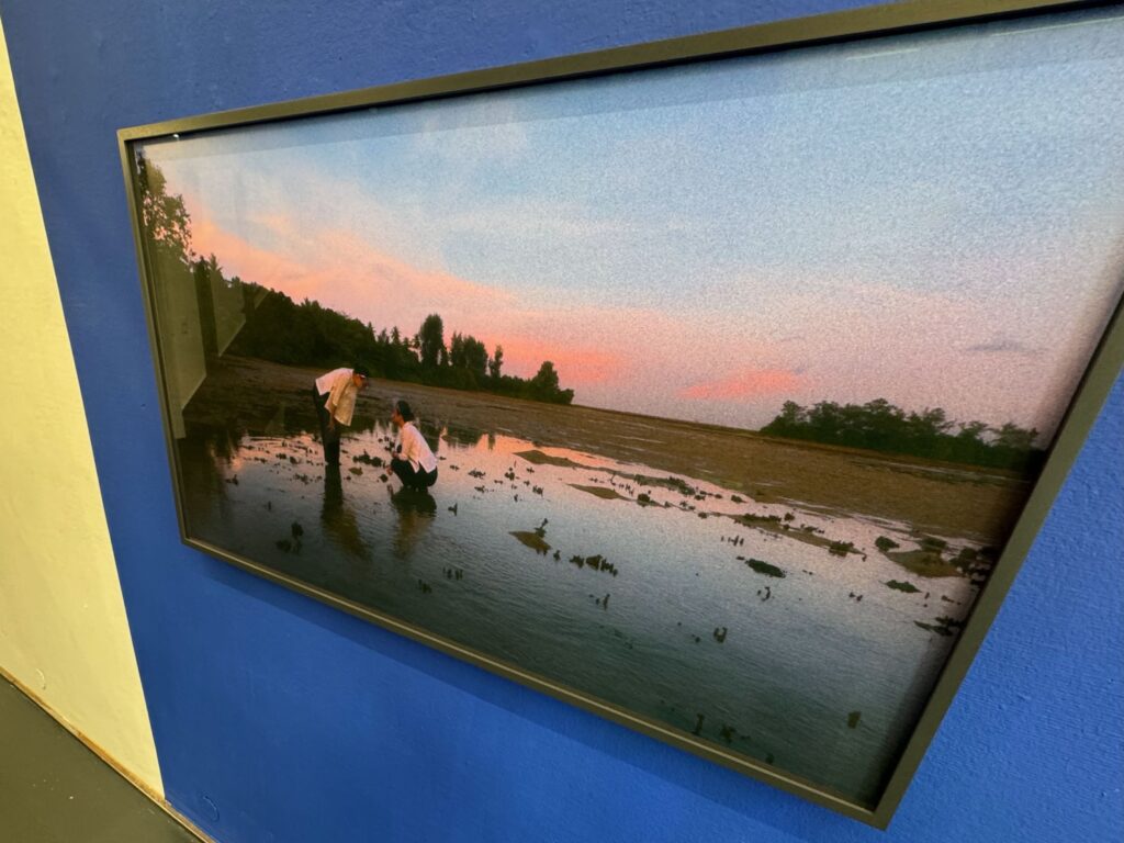 Eigens für diese Ausstellung im Palais Populäre wurde die Videoarbeit „the Moon is wet“ konzipiert. Faszinierend schön und sehr eindringlich zeigen sich die Probleme der Finanzmetropole Singapur, die ohne weltweiten Handel nicht überleben kann und ihre Ressourcen ans Limit bringt. Der steigende Wasserbedarf und die wachsenden Stadt bedrohen die Mangrovenwälder in der Peripherie, die für die Ökologie dieser Region unerlässlich sind.