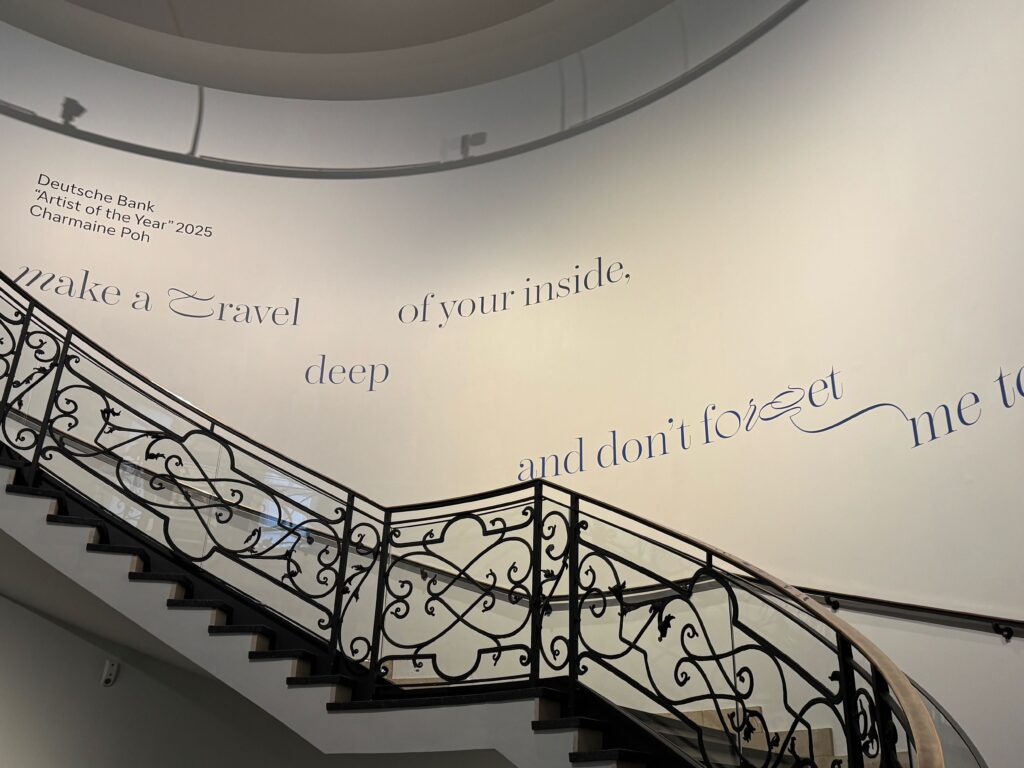 Charmaine Poh, 1990 in Singapur geboren, ist 2025 zum „Artist of the Year“ der Deutschen Bank ausgewählt worden. Sie hat in Berlin studiert, lebt in Singapur und Berlin.
