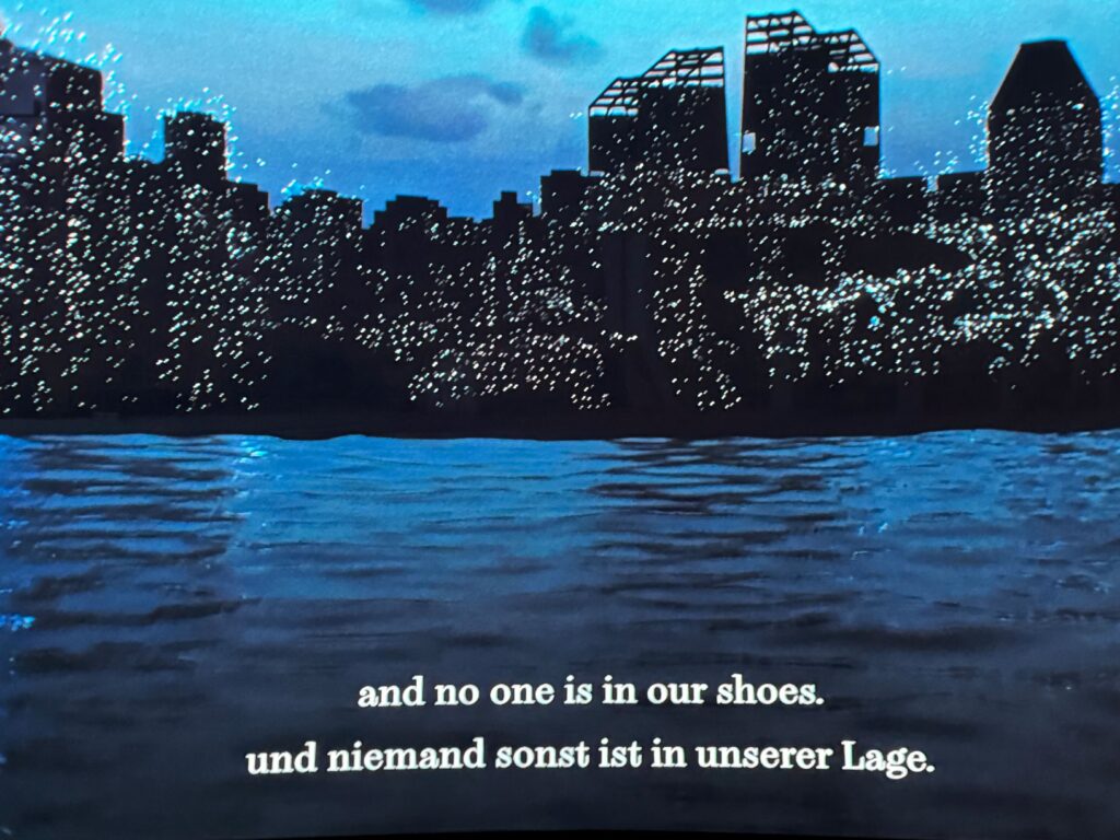 Ihre Themen sind ernst, aber Charmaine Poh schafft mit ihren Videos ein gradezu meditatives Ambiente. Noch gerade noch auf Berlins Boulevards im eisigem Wind entlang gestürmt, legt sich mit dem Eintritt in die Ausstellung eine wohltuende Entspannung wie ein Seidenschal auf die Sinne.