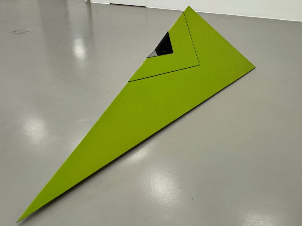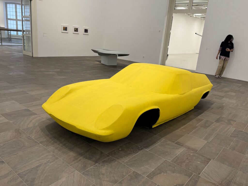 Beinahe Science Fiction entsprungen, mutet das Fahrzeug aus grüner Emailfarbe und Plexiglas an. In Form einer beinahe Pyramide gebaut, mit Cockpit, Autositz Lenkvorrichtung und 3 Rädern. Für Grosvenor war es nicht nur ein Kunstobjekt, sondern sollte angeblich auf den Strassen New Yorks fahren. Ohnehin gehören Vehikel in jedweder Art zum Kunstleben von Robert Grosvenor, einen Einblick gibt die Galerie voller Modelle zu Beginn der Ausstellung.